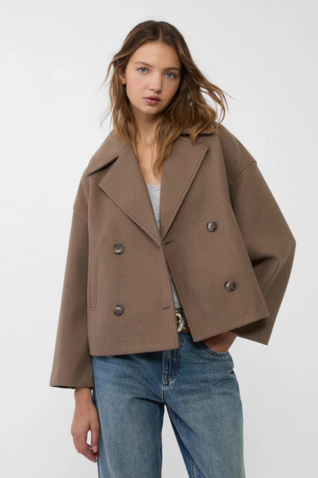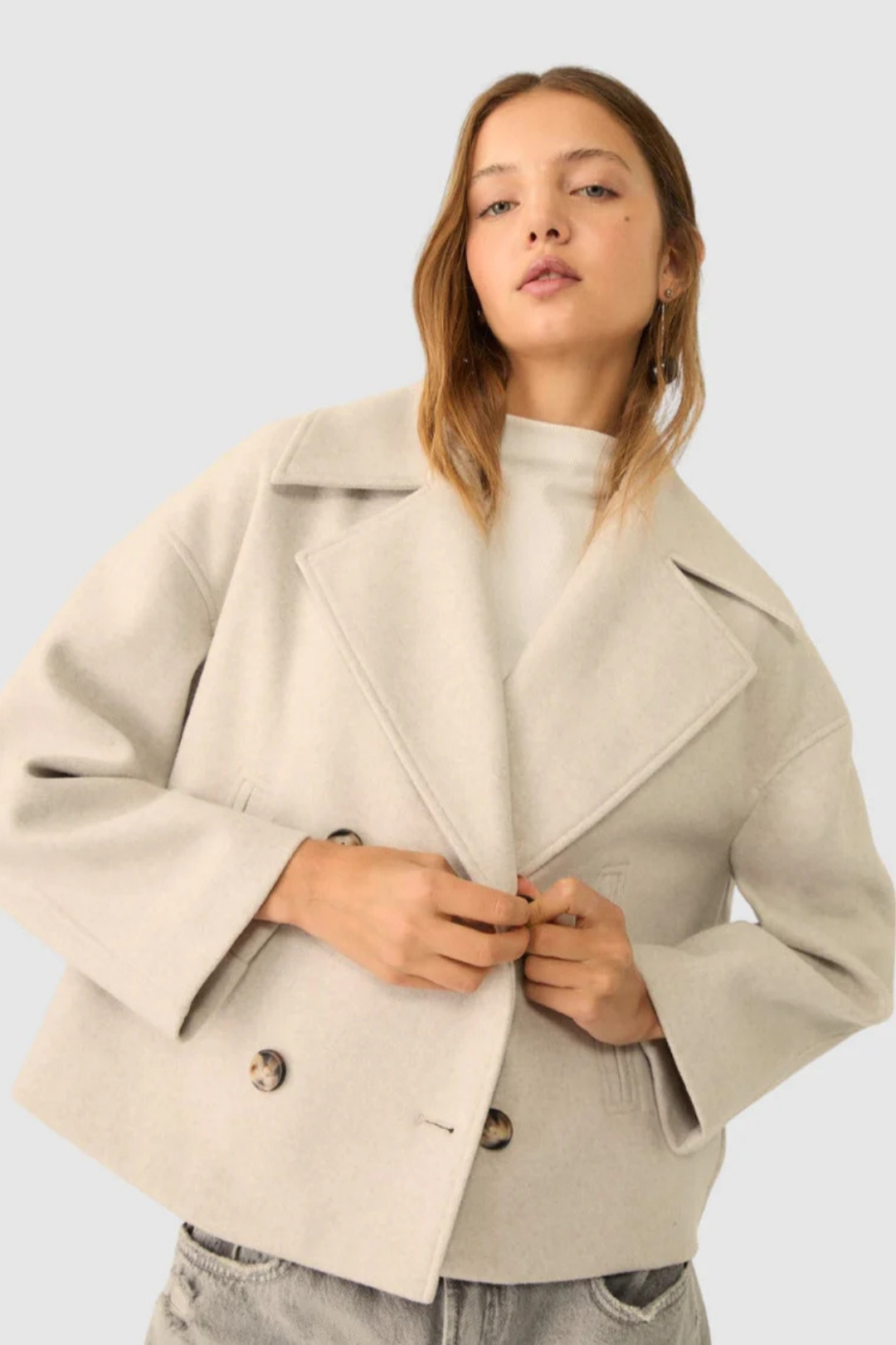 Élégant, moderne et intemporel, ce manteau court en laine mélangée est la pièce parfaite pour affronter la saison avec style. Sa coupe droite et légèrement oversize offre un confort absolu tout en mettant en valeur la silhouette.